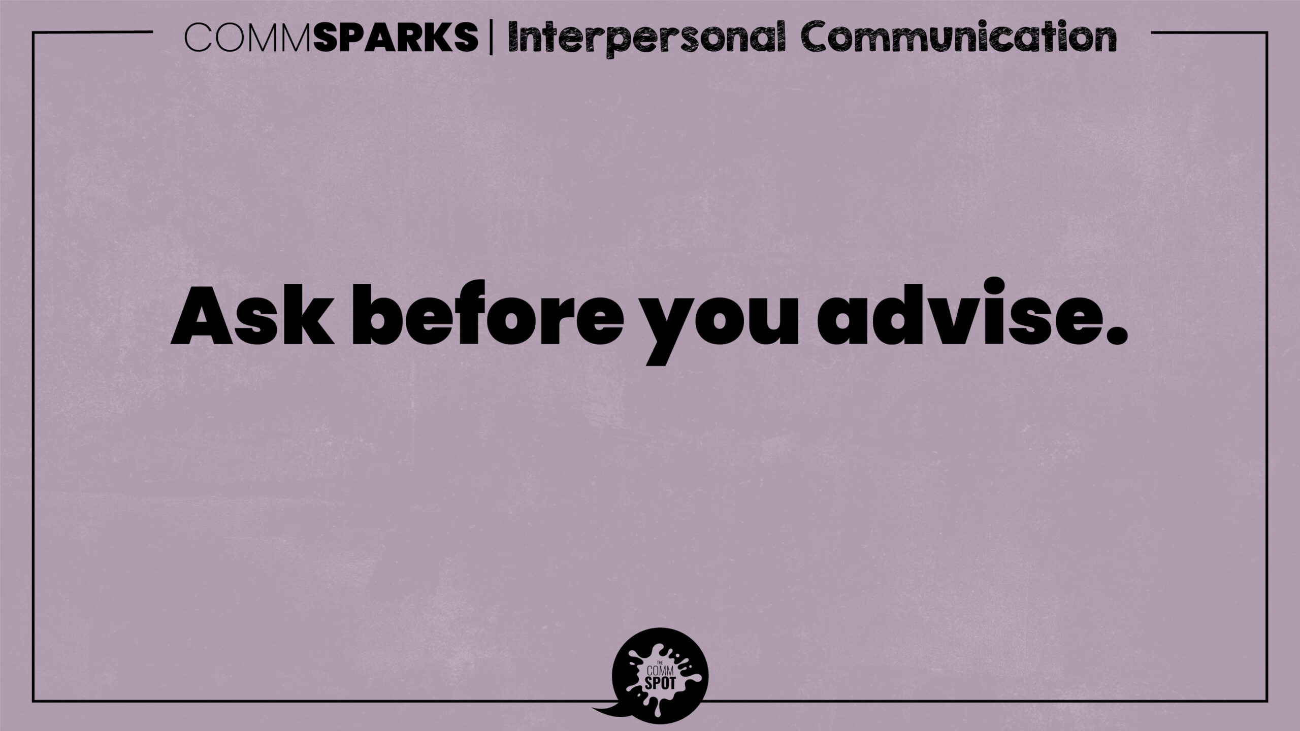 Ask before you advise.